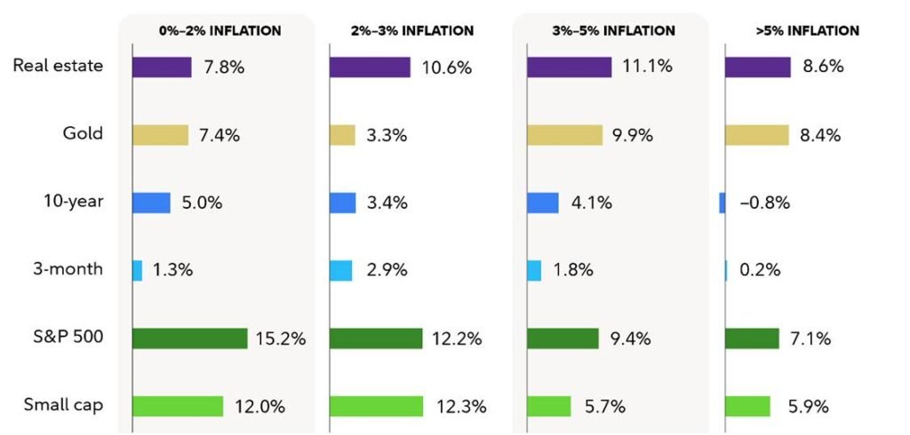 How Select Asset Classes Have Performed in Different Inflation Ranges (1960 – 2024)